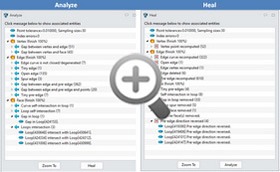2015 버전의 “복구/분석”기능은 사용자가 좀 더 정확하게 CAD상의 위상 오류를 감지하고 수정할 수 있게 해주며, 아래와 같은 변경사항들을 체크할 수 있습니다.