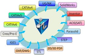 ZW3D 제품 자체로 외부 CAD 포맷 변환기를 포함하고 있습니다.